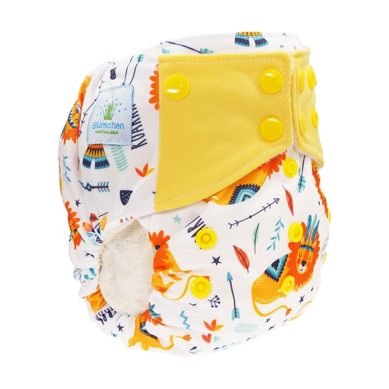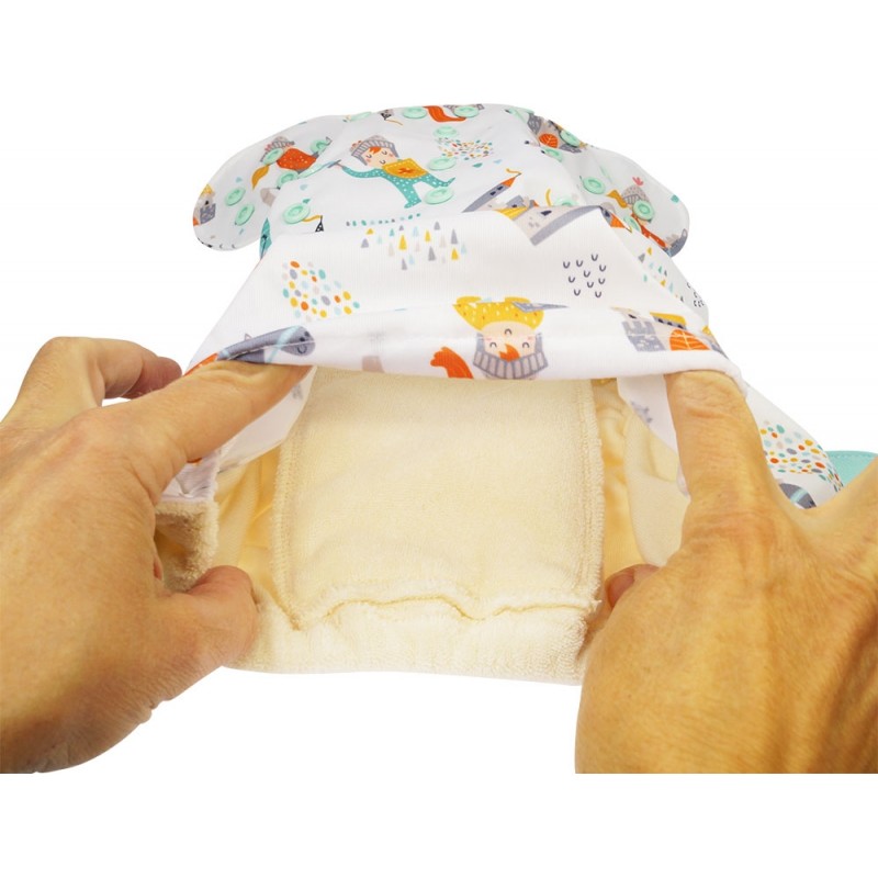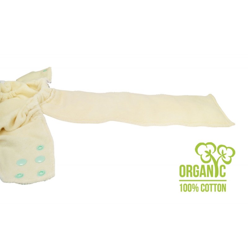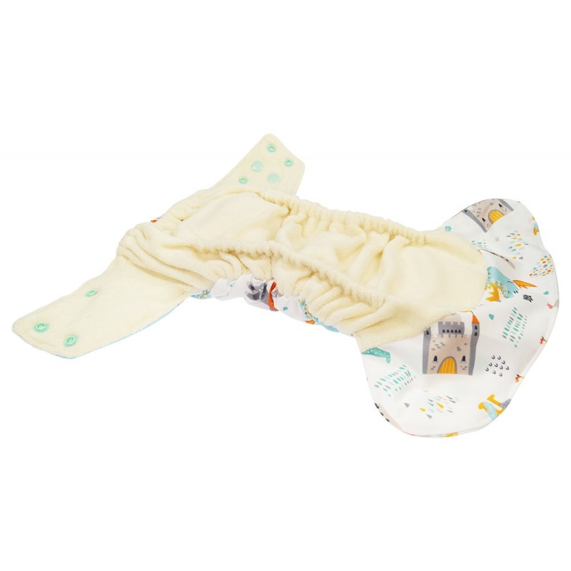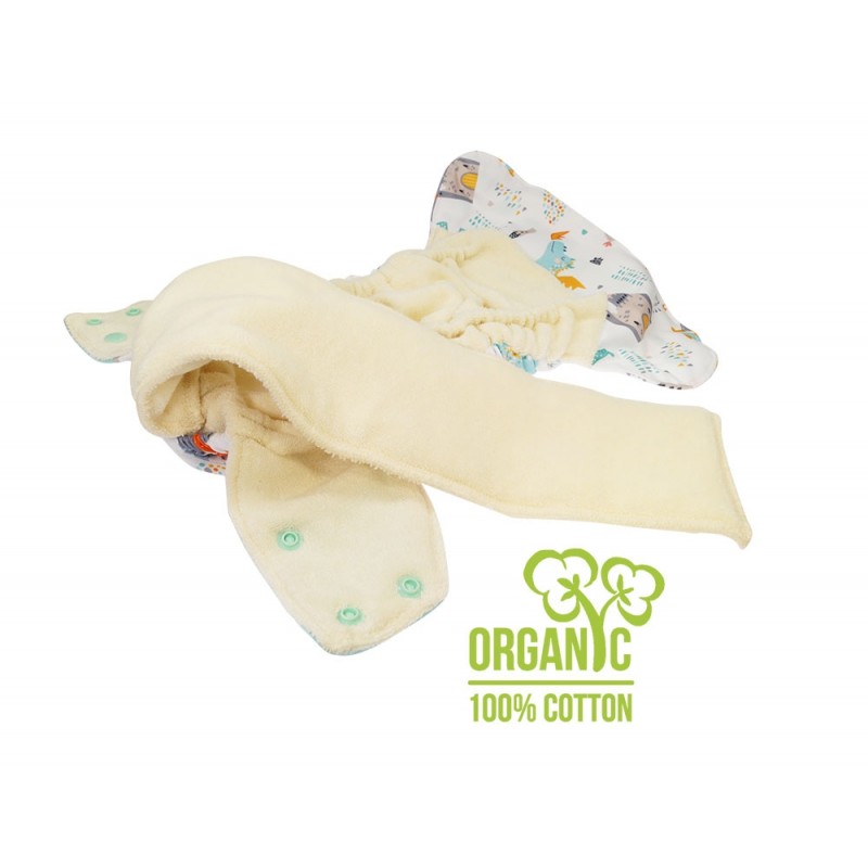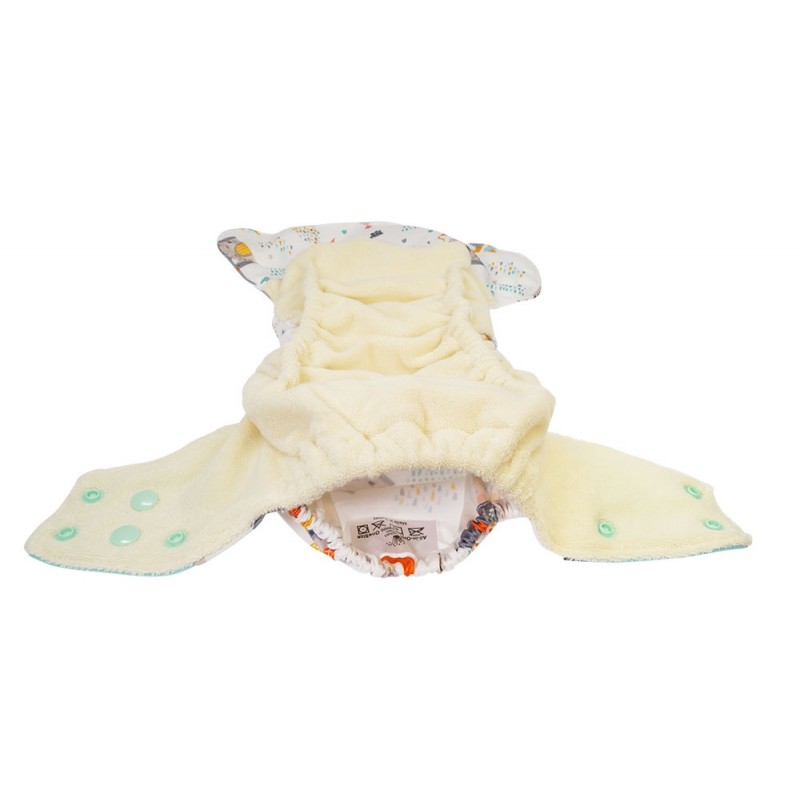 Pannolino Tutto in uno (AIO), il modello più simile all'usa e getta, con parte assorbente in spugna di cotone biologico