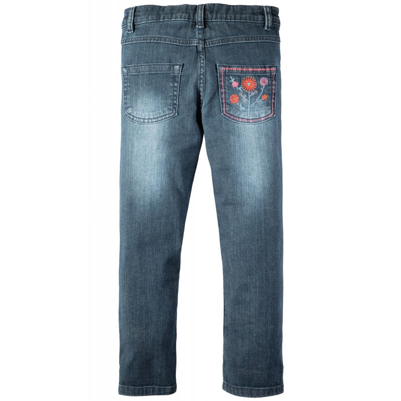 Super morbidi e resistenti, i nostri jeans modello Jilly slim fit sono perfetti per stare al passo con la tua bimba nelle sue avventure selvagge! In un classico design Mid Wash Denim, questi jeans hanno una splendida stampa all'interno che rende divertente e colorato il risvolto. Una tasca posteriore è ricamata con un bellissimo motivo fiorato.