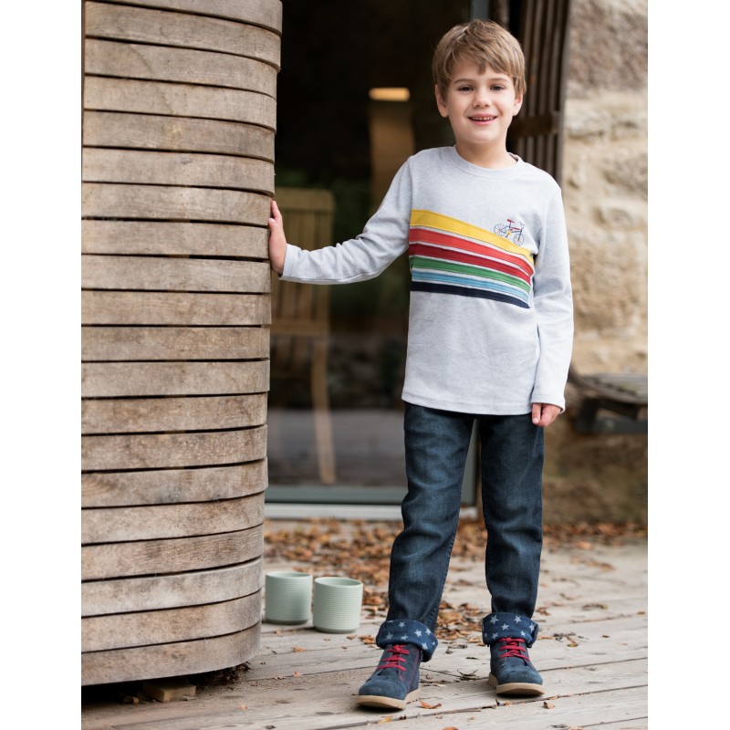 Super morbidi e resistenti, i nostri jeans modello Joseph slim fit sono perfetti per stare al passo con il tuo bimbo nelle sue avventure selvagge! In un classico design Dark Wash Denim, questi jeans hanno una splendida stampa all'interno che rende divertente e colorato il risvolto. Le tasce posteriori sono decorate con un bellissimo motivo montuoso.