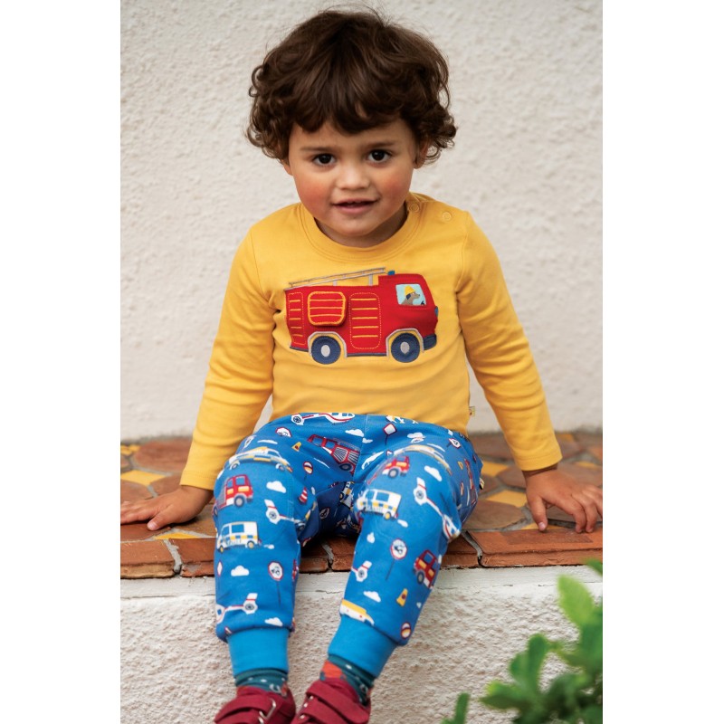 Pantaloni confortevoli e colorati in cotone biologico felpato, con toppe sulle ginocchia.