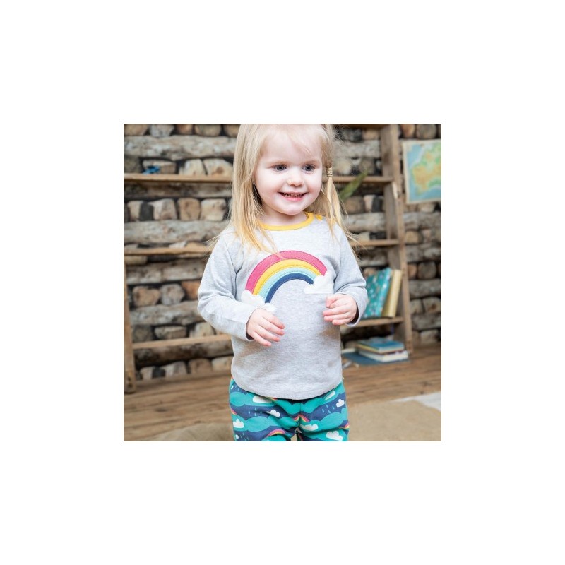 Maglietta in morbido cotone biologico certificato Gots con colorata applique arcobaleno