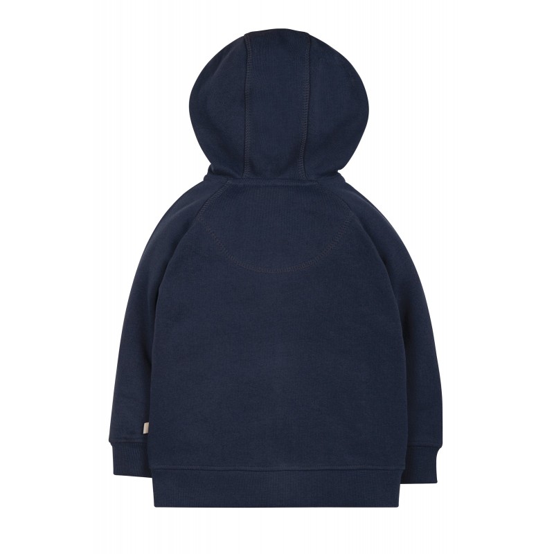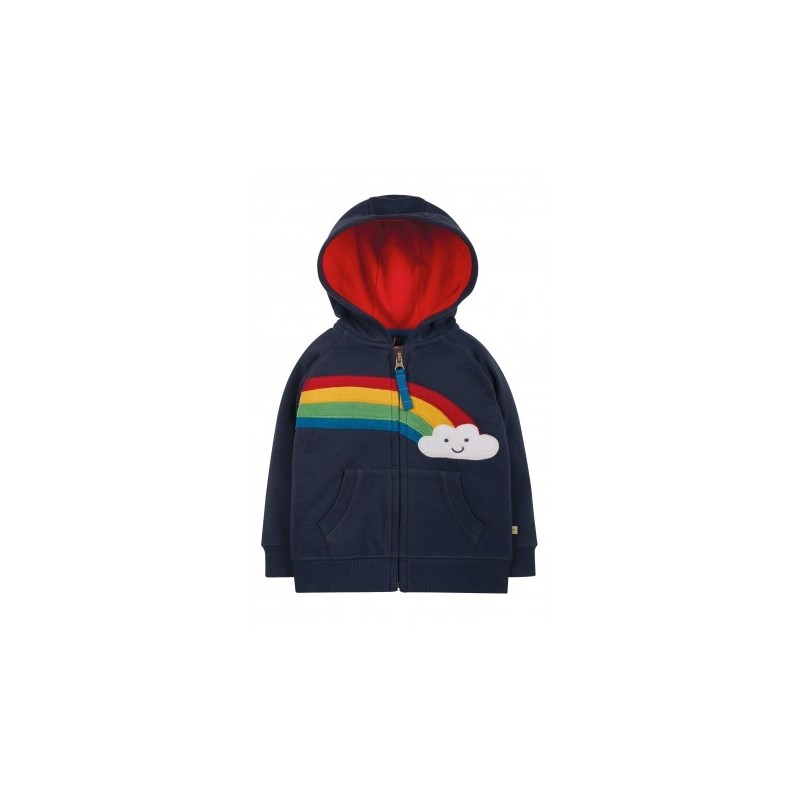 Morbida felpa in cotone biologico con cappuccio, cerniera, tasche e simpatica e colorata applique , super confortevole e con un'ottima vestibilità.