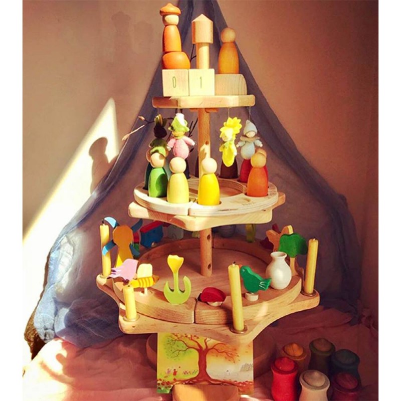 Sul ripiano più grande trovi 7 spazi per inserire candele o personaggi Grimm (non compresi nella confezione). Su tutti i ripiani sono presenti anche piccoli fori che ti permettono di infilare fiori e far passare fili con cui appendere altre decorazioni.