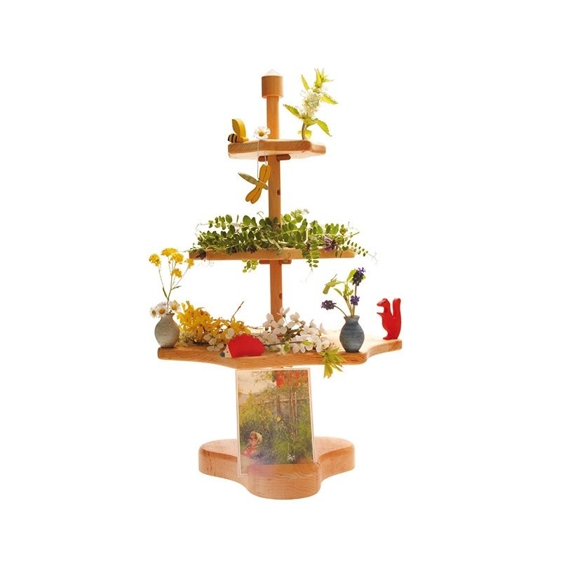 Stand a 3 ripiani in legno di ontano, perfetto per l'angolo delle stagioni