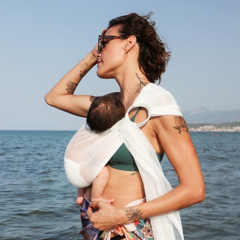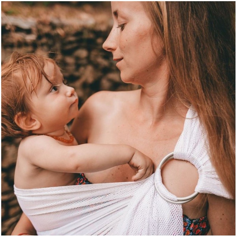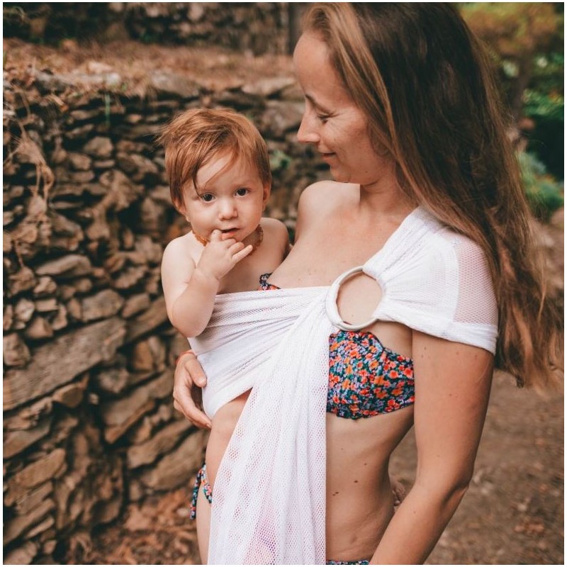 La Water Slings ad anelli naturalmente permette di portare pancia a pancia e sul fianco, a seconda delle vostre esigenze.