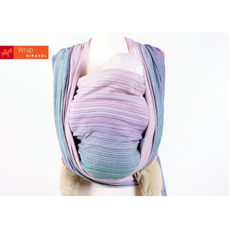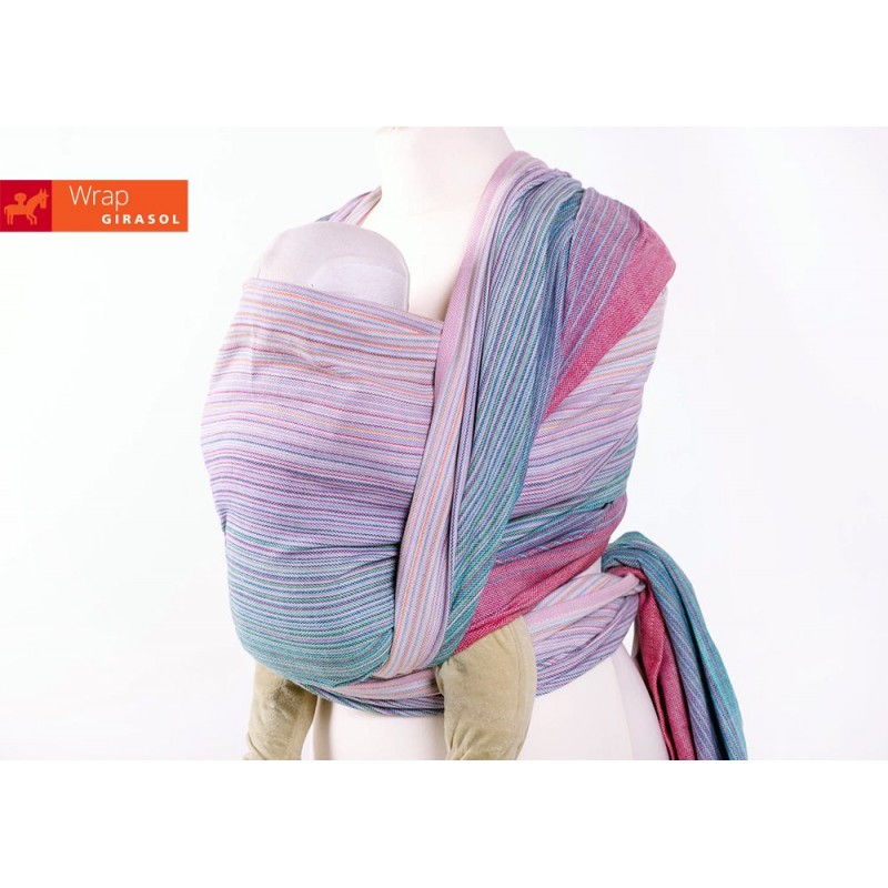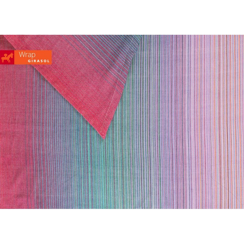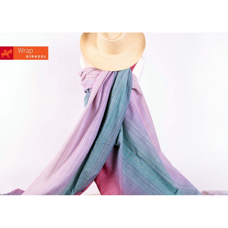 Le fasce Girasol sono realizzate da artigiani con telai manuali. A differenza delle fasce tessute con telai industriali, questo tipo di fasce presenta irregolarità e “imperfezioni” che non influenzano la sicurezza del supporto e testimoniano la lavorazione artigianale di cui sono il risultato.
