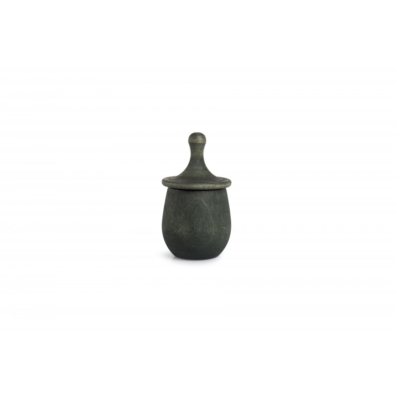Piccola scatola dei desideri con un omino-trottola come coperchio
