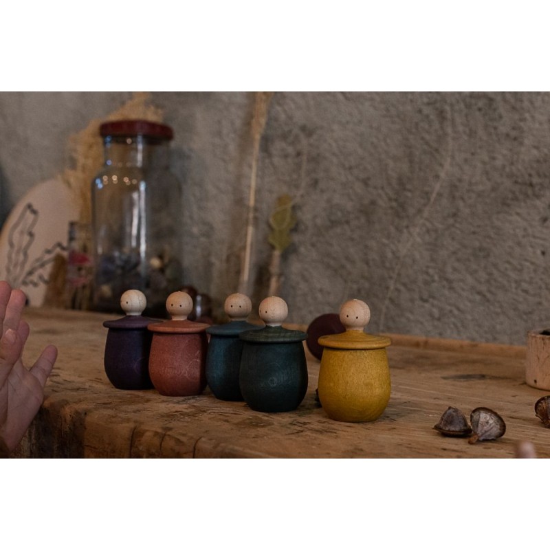 Il tappo che chiude il contenitore è una trottola omino: la scatola diventa un pesonaggio panciuto, una ciotolina magica, quello che vuoi tu!