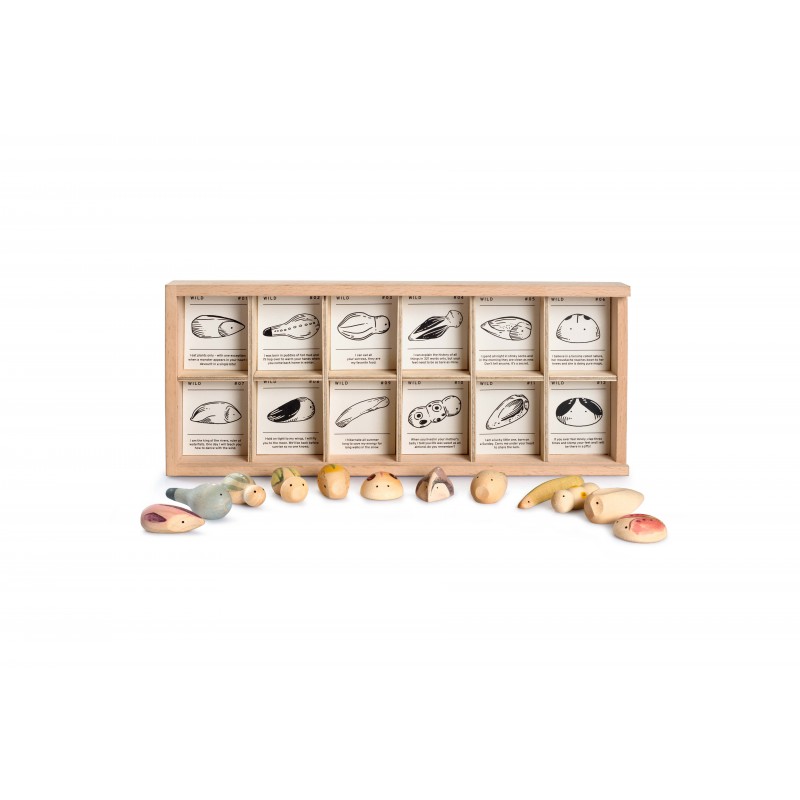 I personaggi sono contenuti in una scatola di classificazione in legno con 12 scomparti.
