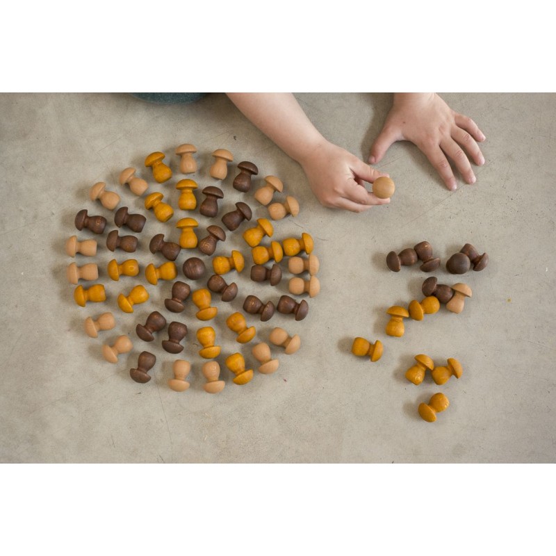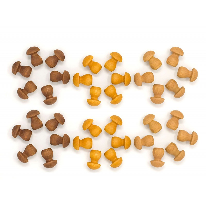36 funghetti in legno nelle sfumature del marrone