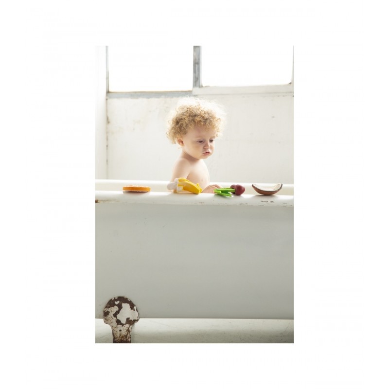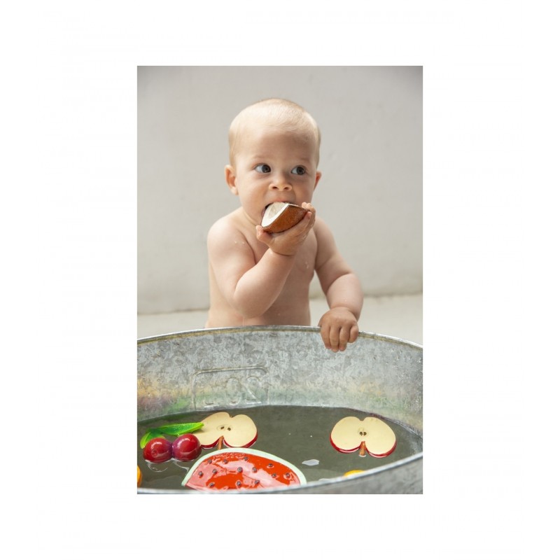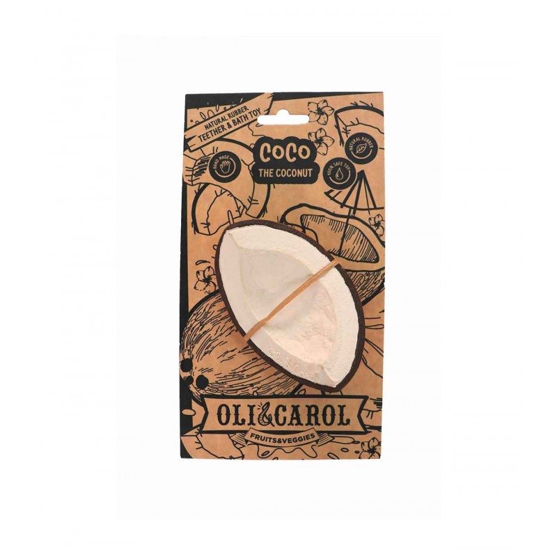 Coco la noce di cocco è un giocattolo da masticare per la dentizione, il bagnetto ed il gioco sensoriale. Realizzato a mano in gomma naturale al 100% e dipinto a mano con pigmenti naturali.
