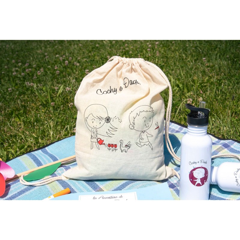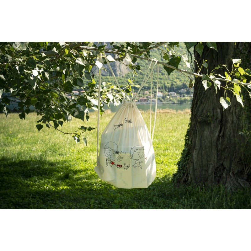 Zainetto - sacca in cotone naturale con chiusura a coulisse, perfetta come zainetto per il centro estivo, le gite, per trasportare i giochi preferiti, matite e album da colorare o vestiti di cambio.